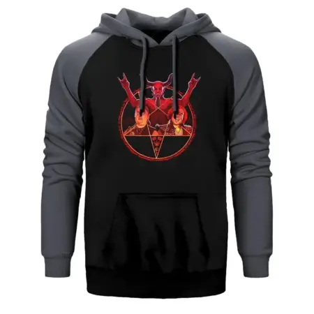 • Tenacious D Beelzeboss Hoodie, Double Color Raglan Sleeve Gray Sweatshirt