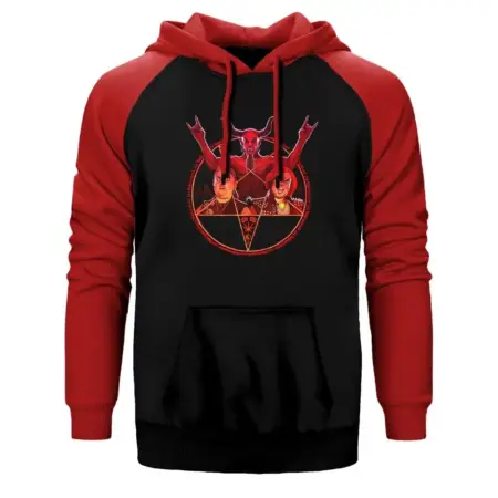• Tenacious D Beelzeboss Hoodie, Double Color Raglan Sleeve Red Sweatshirt