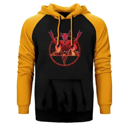 • Tenacious D Beelzeboss Hoodie, Double Color Raglan Sleeve Yellow Sweatshirt