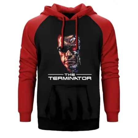 • Terminator Arnold Schwarzenegger Hoodie, Double Color Raglan Sleeve Red Sweatshirt