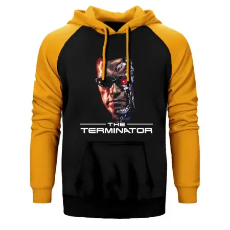 • Terminator Arnold Schwarzenegger Hoodie, Double Color Raglan Sleeve Yellow Sweatshirt