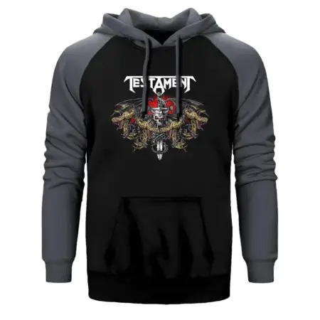 • Testament Dark Roots of Thrash Hoodie, Double Color Raglan Sleeve Gray Sweatshirt