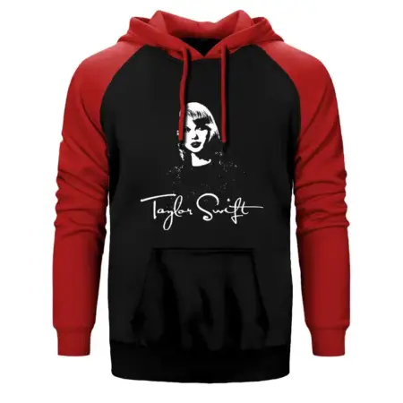 • Taylor Swift Silhouette Hoodie, Double Color Raglan Sleeve Red Sweatshirt