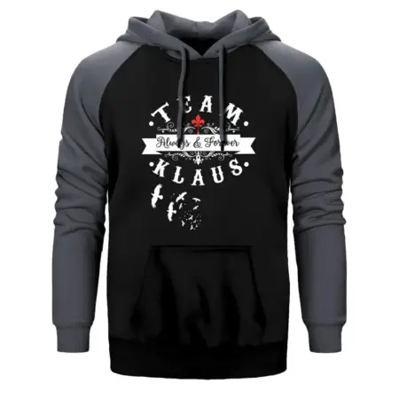 • Team Klaus Hoodie, Double Color Raglan Sleeve Gray Sweatshirt