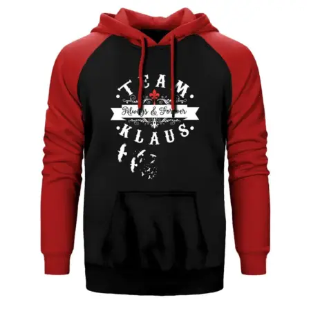 • Team Klaus Hoodie, Double Color Raglan Sleeve Red Sweatshirt