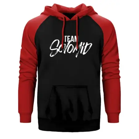 • Team Solomid Brush Hoodie, Double Color Raglan Sleeve Red Sweatshirt