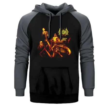 • Bloodbath The Fathonhess Mastery Hoodie, Double Color Raglan Sleeve Grey Sweatshirt