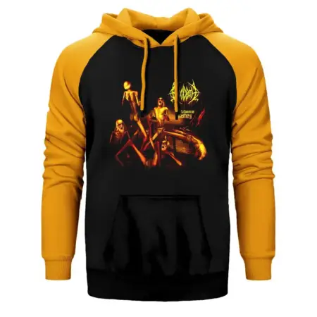 • Bloodbath The Fathonhess Mastery Hoodie, Double Color Raglan Sleeve Yellow Sweatshirt