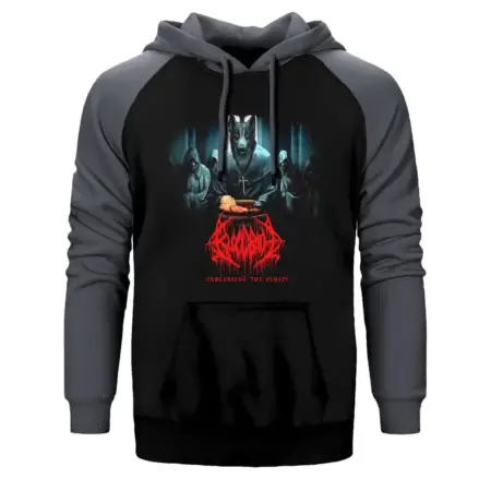 • Bloodbath Unblessing The Purity Hoodie, Double Color Raglan Sleeve Grey Sweatshirt