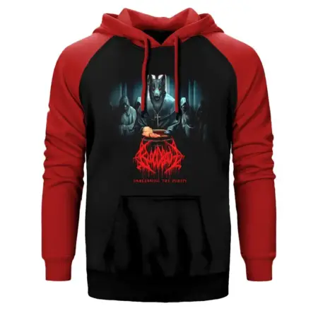 • Bloodbath Unblessing The Purity Hoodie, Double Color Raglan Sleeve Red Sweatshirt