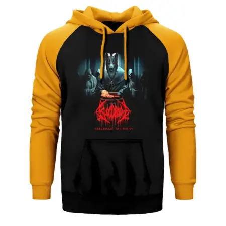• Bloodbath Unblessing The Purity Hoodie, Double Color Raglan Sleeve Yellow Sweatshirt