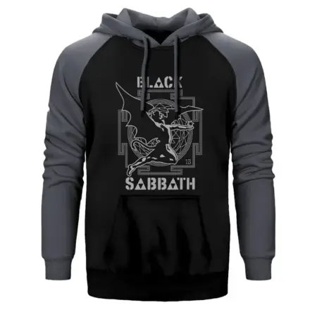 • Black Sabbath 13 Angel Hoodie, Double Color Raglan Sleeve Grey Sweatshirt