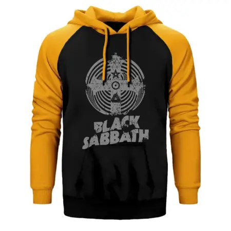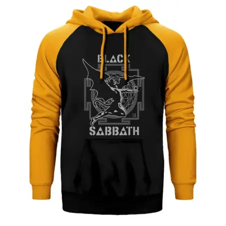 • Black Sabbath 13 Hoodie, Double Color Raglan Sleeve Yellow Sweatshirt