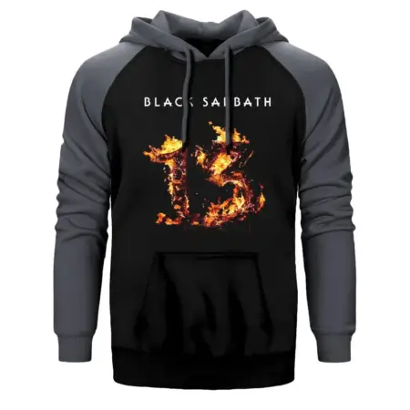 • Black Sabbath 13 Hoodie, Double Color Raglan Sleeve Grey Sweatshirt