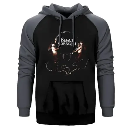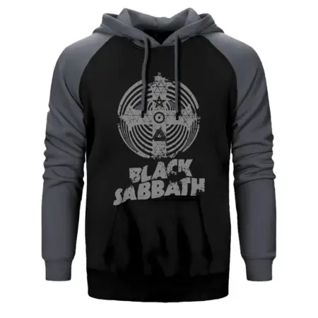 • Black Sabbath Band Cross Paranoid Hoodie, Double Color Raglan Sleeve Grey Sweatshirt