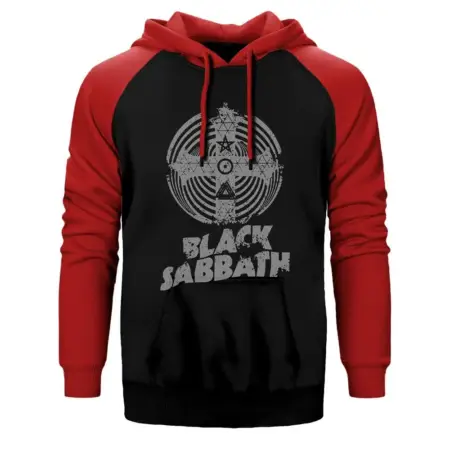 • Black Sabbath Band Cross Paranoid Hoodie, Double Color Raglan Sleeve Red Sweatshirt