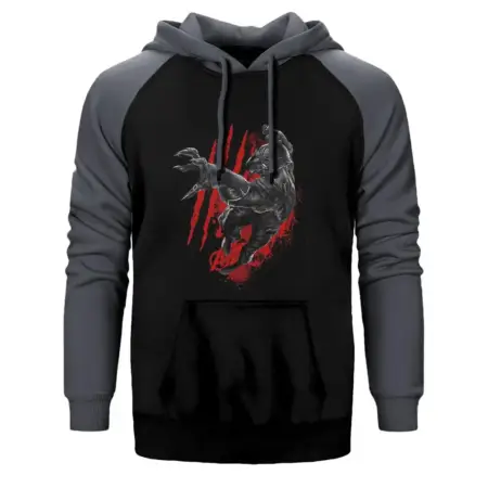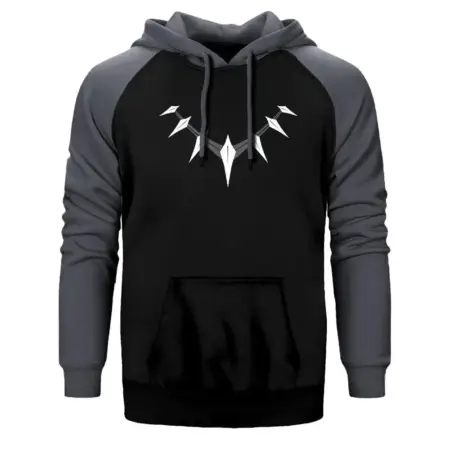 • Black Panther Hoodie, Double Color Raglan Sleeve Grey Sweatshirt