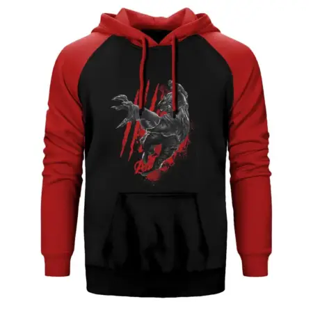 • Black Panther Hoodie, Double Color Raglan Sleeve Red Sweatshirt
