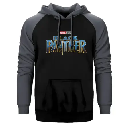 • Black Panther Original Logo Hoodie, Double Color Raglan Sleeve Grey Sweatshirt