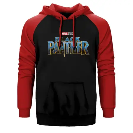 • Black Panther Original Logo Hoodie, Double Color Raglan Sleeve Red Sweatshirt