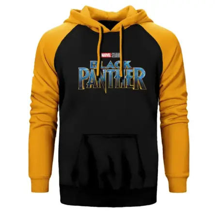 • Black Panther Original Logo Hoodie, Double Color Raglan Sleeve Yellow Sweatshirt