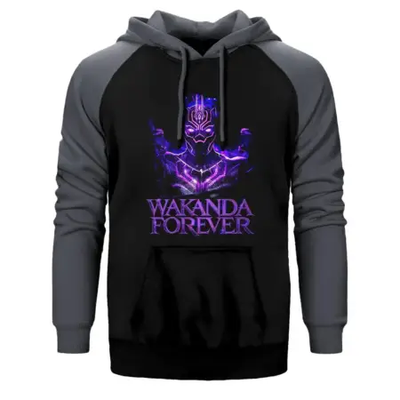 • Black Panther Wakanda Forever Hoodie, Double Color Raglan Sleeve Grey Sweatshirt
