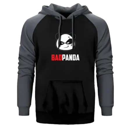 • Bad Panda Hoodie, Double Color Raglan Sleeve Grey Sweatshirt