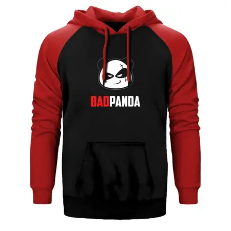 • Bad Panda Hoodie, Double Color Raglan Sleeve Red Sweatshirt