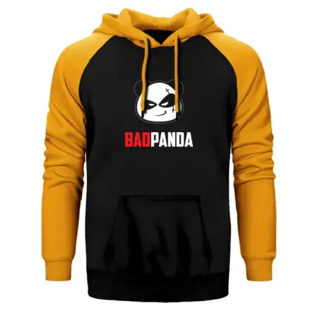 • Bad Panda Hoodie, Double Color Raglan Sleeve Yellow Sweatshirt