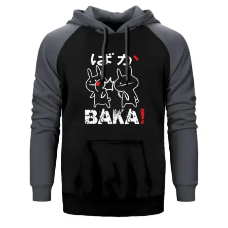 • Baka Hoodie, Double Color Raglan Sleeve Grey Sweatshirt