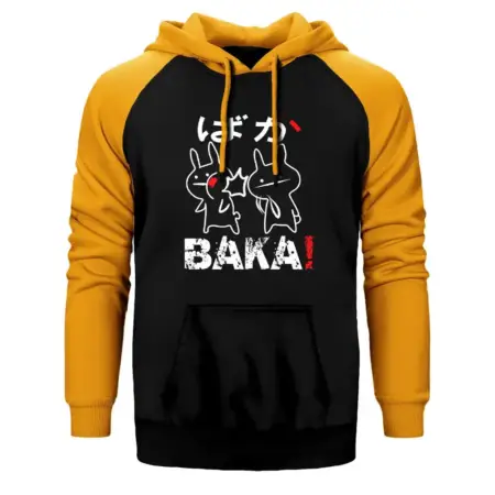 • Baka Hoodie, Double Color Raglan Sleeve Yellow Sweatshirt