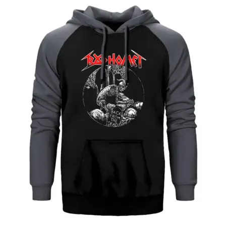 • Baphomet Back From The Dead Hoodie, Double Color Raglan Sleeve Grey Sweatshirt