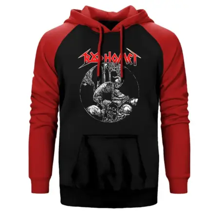 • Baphomet Back From The Dead Hoodie, Double Color Raglan Sleeve Red Sweatshirt