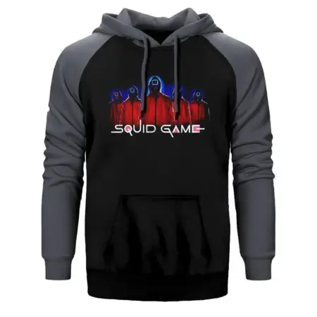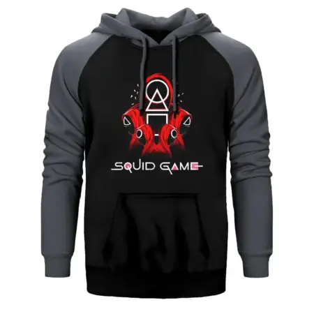 • Squid Game Staff Team Double Color Raglan Sleeve Grey Hoodie Sweatshirt