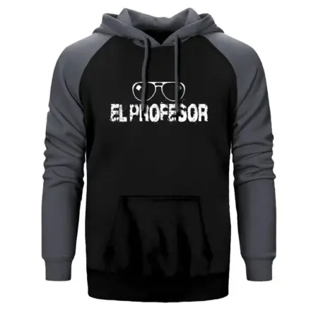 • La Casa De Papel El Professor Glasses Double Color Raglan Sleeve Grey Hoodie Sweatshirt