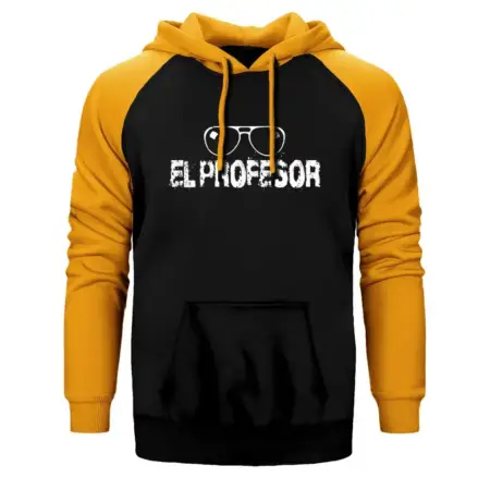 • La Casa De Papel Professor Double Color Raglan Sleeve Yellow Hoodie Sweatshirt