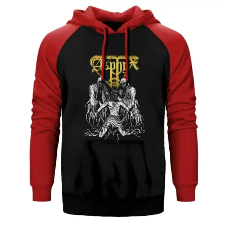 • Asphyx Double Color Raglan Sleeve Red Hoodie Sweatshirt