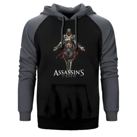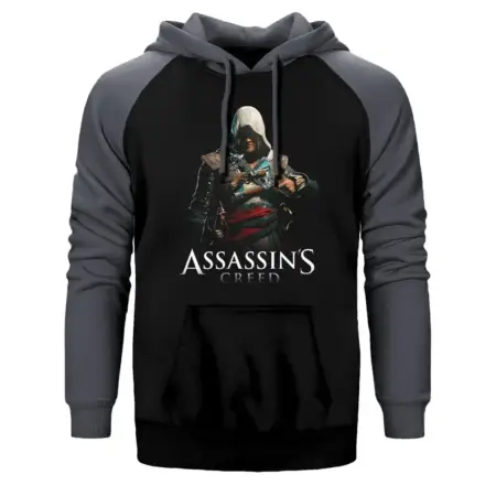 • Assassin’s Creed Double Color Raglan Sleeve Grey Hoodie Sweatshirt