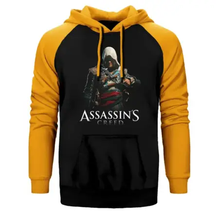• Assassin’s Creed Double Color Raglan Sleeve Yellow Hoodie Sweatshirt