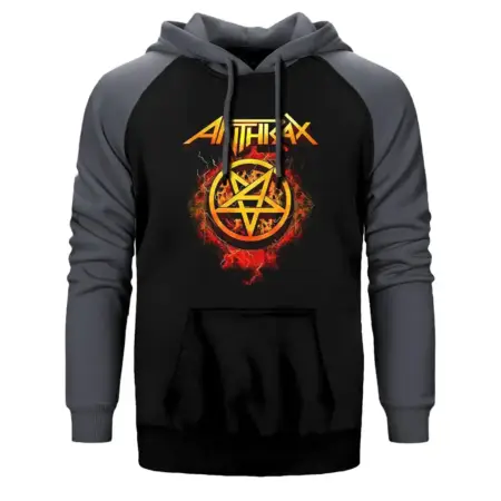 • Anthrax Fire with Pentagram Raglan Sleeve Grey Sweatshirt