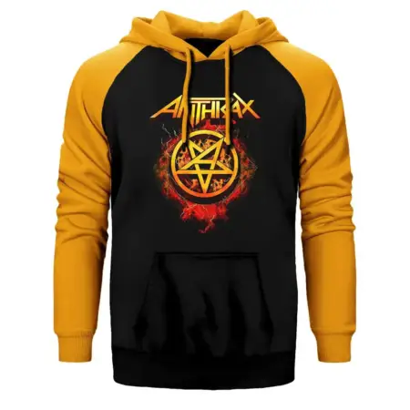 • Anthrax Fire with Pentagram Raglan Sleeve Yellow Sweatshirt