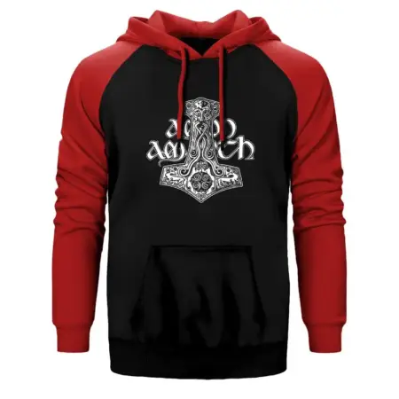 • Amon Amarth Thor Hammer Raglan Sleeve Red Sweatshirt