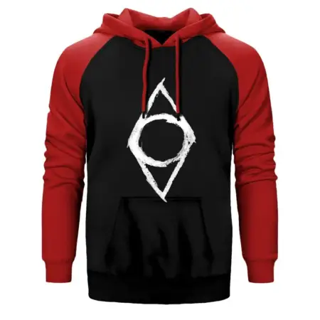 • Skyrim Shadowmark Hoodie, Double Color Raglan Sleeve Red Sweatshirt