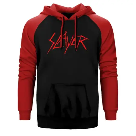 • Slayer Logo Hoodie, Double Color Raglan Sleeve Red Sweatshirt