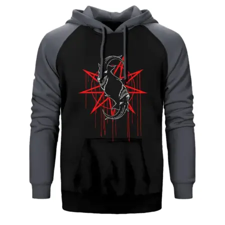 • Slipknot Goat From Hell Hoodie, Double Color Raglan Sleeve Gray Sweatshirt