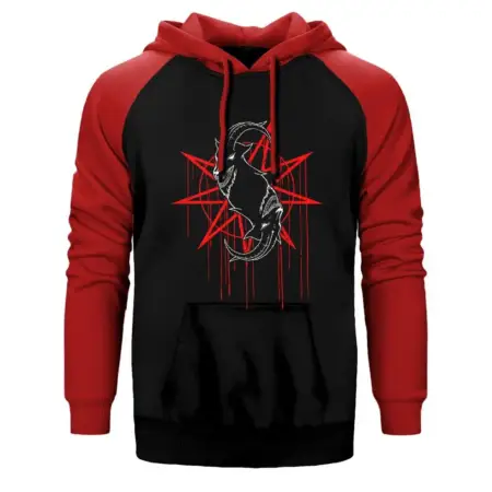 • Slipknot Goat From Hell Hoodie, Double Color Raglan Sleeve Red Sweatshirt