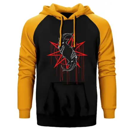 • Slipknot Goat From Hell Hoodie, Double Color Raglan Sleeve Yellow Sweatshirt