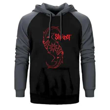 • Slipknot Goat Logo Hoodie, Double Color Raglan Sleeve Gray Sweatshirt