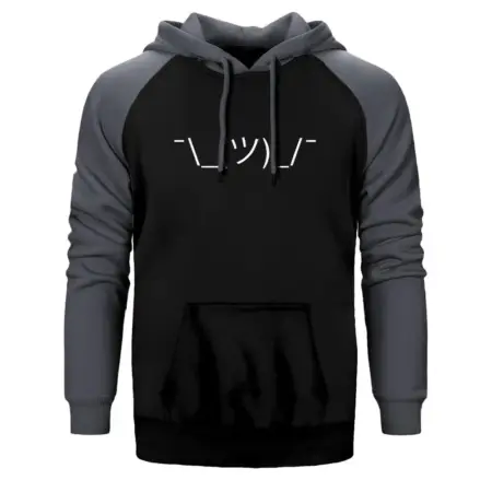 • Shrug Emoji Hoodie, Double Color Raglan Sleeve Gray Sweatshirt