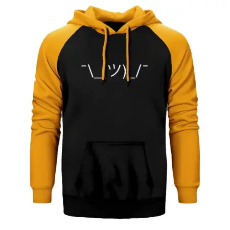• Shrug Emoji Hoodie, Double Color Raglan Sleeve Yellow Sweatshirt